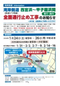 湾岸側道(西宮浜~甲子園浜)通行止め工事のお知らせ